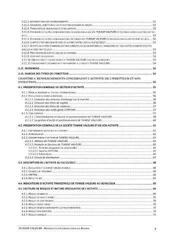4.4. INDICATEURS D’ACTIVITE TRIMESTRIELS DE TUNISIE VALEURS AU 30/06/2018 ................................................. 69